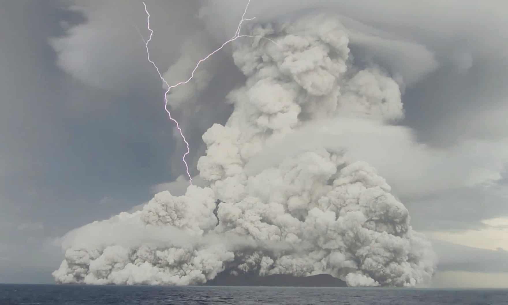 How the Hunga Tonga eruption looked on the ocean surface (Picture: The Guardian)